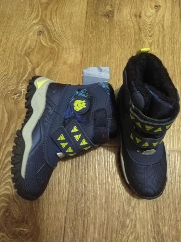 Сверху - комбинация полиуретана и влагостойкого материала. Внутри - легкая плюшевая подкладка и стелька внизу фольгированная для сохранения тепла Застежка - липучка. Прочная подошва. 25: 2 (16,5 см) 26: 3 (17,5 см) 27: 4 (18 см) 28: 5 (18,5 см)
