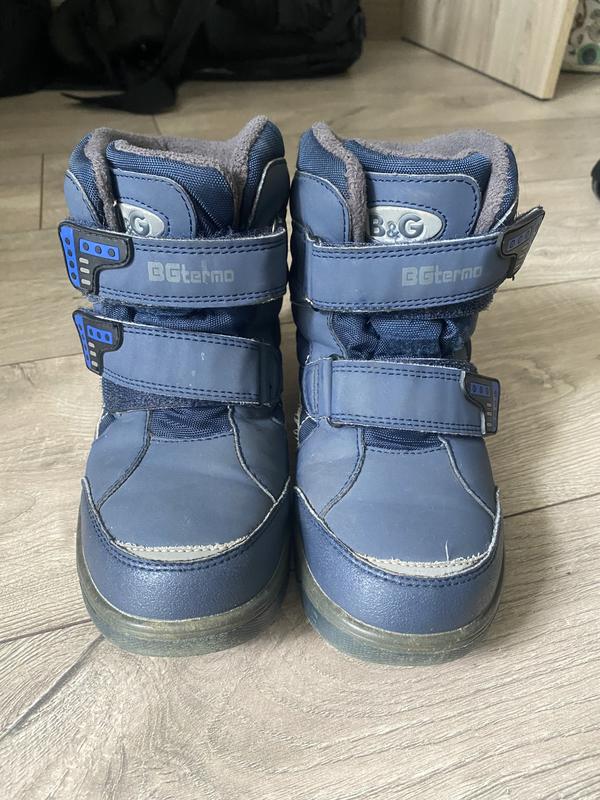 Теплі і якісні черевики для хлопчика, нога завжди в теплі і суха, зручні, навіть для високого підйому. З дефектів усе видно на фото, лише з внутрішньої сторони є невеличкі потертості та тріщини в одному місці, вони не наскрізні, взуття ціле, це потріскалося верхнє покриття, скоріше всього від тертя. В носці зовсім не помітно, бо це внутрішній бік.