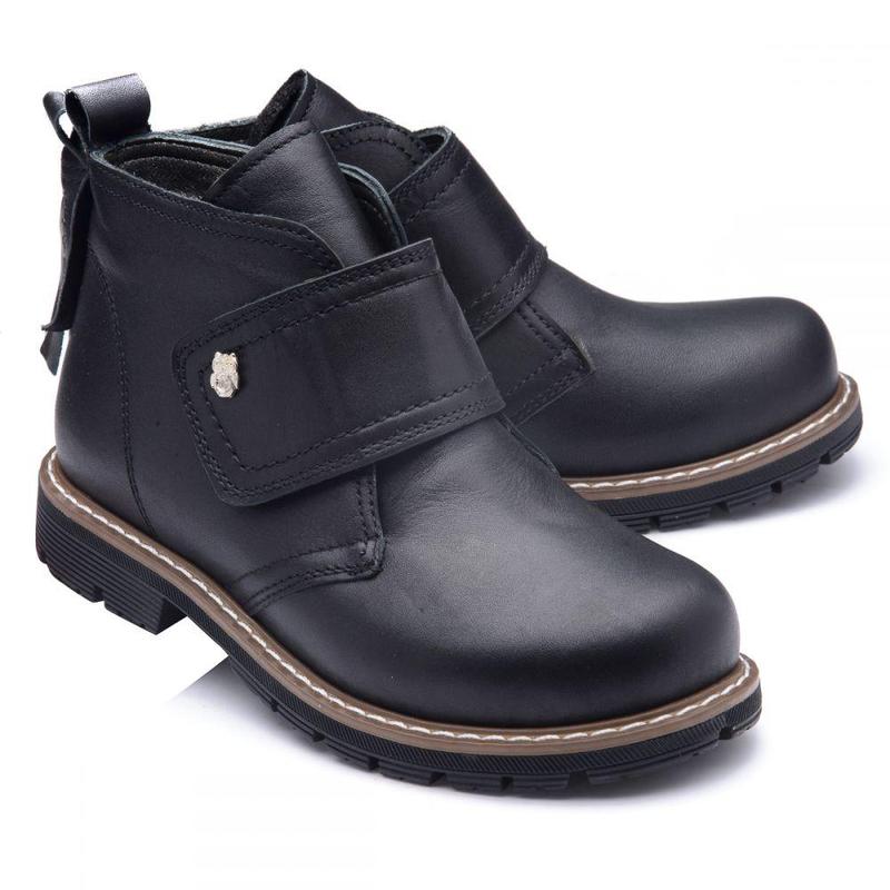 Theo Leo 801 - черевики з натуральної шкіри чорного кольору. Модель надійно фіксується на нозі широкої липучкою. Устілка і підкладка - натуральна шкіра. Підкладка - фліс. У взутті анатомічний супінатор і каблук Томаса. Підошва - рифлена, з вираженим протектором, відмінно поводиться в будь-яку негоду. Відмінно підійдуть до шкільної форми або стилю Casual. Таблиця розмірів: Заміри вказані від краю до краю устілки. - 23 р. - 15,5 см. - 24 р. - 16 см. - 25 р. - 16,5 см. - 26 р. - 17 см. - 27 р. - 17,5 см. - 28 р. - 18,5 см. - 29 р. - 19 см. - 30 р. - 20 см. - 31 р. - 20,5 см. - 32 р. - 21 см. - 33 р. - 21,5 см.