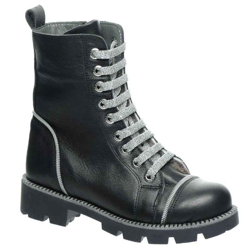Theo Leo 0133 - стильні зимові черевики для дівчинки з натуральної шкіри. Модель на блискавці, декорована шнурками сріблястого кольору. Підкладка та устілка - натуральне хутро. Анатомічна устілка з суппінатором підтримує поздовжнє склепіння стопи. Підошва - термопластична гума, рифлена, не ковзає і добре амортизує. Таблиця розмірів: Заміри вказані від краю до краю устілки. 28 р. - 18,5 см. 29 р. - 19 см. 30 р. - 19,5 см. 31 р. - 20 см. 32 р. - 21 см. 33 р. - 21,5 см. 34 р. - 22 см. 35 р. - 23 см. 36 р. - 23,5 см. 37 р. - 24 см. 38 р. - 24,5 см. 39 р. - 25 см. 40 р. - 26 см.