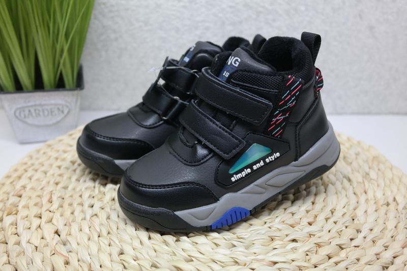 23-28р Tom.m том.м комб. кожа детские деми ботинки сапожки мальчишки черные с утеплением