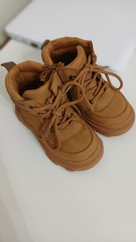Ботинки детские zara, размер 22, по стельке не полны 13 см, в идеале на ножку до 12.5 см, внутри не утепленные, но классно на раннюю осень, не промокают. Легко надевать есть шнуровка и замочек. Состояние - идеальный. Никаких трещин или потертостей, немножко видны на подошве следы от ношения. Доставка лише нова пошта.