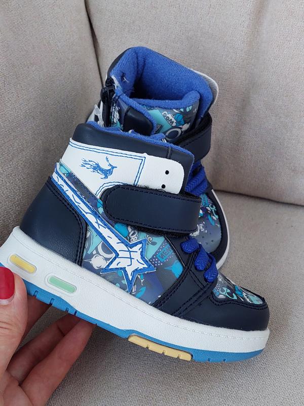 деми хайтопы Том.м, легкие, яркие, застежка липучка, сбоку молния, шнурок резинка, утепленные флисом, стелька кожа 21-13 см 22-13.8 см 23-14.5 см 24-15.0 см 26-16.5 см