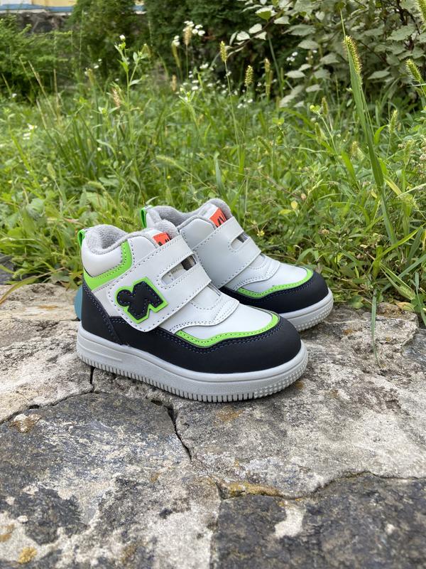 Демісезонні ботинки для хлопчика в сірому кольорі. J Гнучка підошва, не ковзає, з водонепроникною та дихаючою мембраною • Верх взуття натуральна шкіра з еко шкірою • Устілка шкіряна з текстилем J Збоку змійка застібка і широка липучка • Утеплені флісом Розміри 22-14 см 23-14,5 см 24-15,5 см