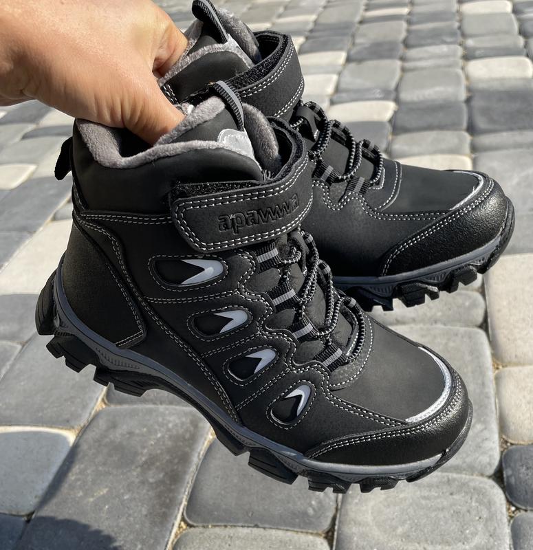 Зимние ботинки для мальчиков от ТМ Apawwa Верх экокожа Удобная и практичная подошва Стелька анатомическая утепленная плюшем Внутри плотный искусственный мех Есть шнуровка резинка, липучка и молния 32-20,7 см 33-21,5 см 34-22,2 см 35-23 см 36-23,5 см 37-24 см стелька