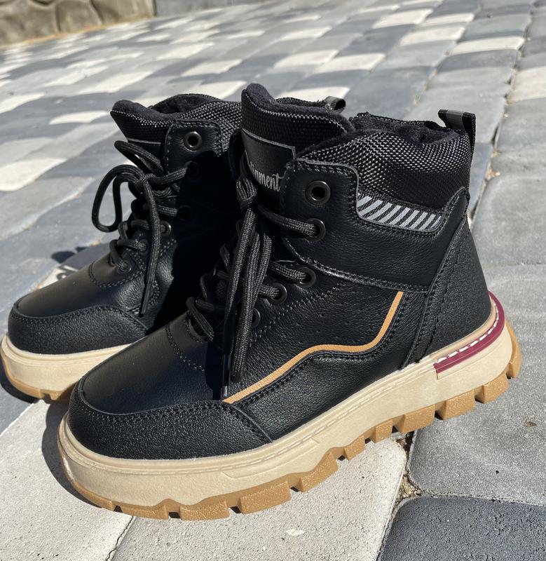 Стильная новинка зимних ботинок для мальчика Верх экокожа Есть шнуровка молния Гибкая подошва Утепленные плотно натуральным мехом 32-21,4 см 33-21,6 см 34-22,2 см 35-23 см 36-23,2 см 37-23,6 см стелька