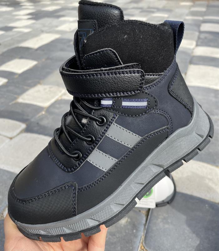 Стильные зимние ботинки для мальчиков Верх экокожа Защита носочка и пяточки Удобная подошва Есть шнуровка резинка, липучка и молния Утепленные натуральным мехом 27-19 см 28-19,5 см 29-20 см 30-20,8 см 31-21 см 32-21,5 см