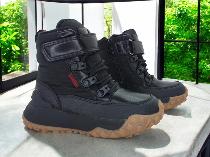 Ботинки зимние Clibee арт.543BR, черный Материал верха – экокожа. Подкладка – овчина Стелька-овчина Застежка-липучка, шнуровка-резинка Сбоку удобная застежка-молния. Протекторная подошва. Обеспечивает отличное сцепление с поверхностью Размер по сетке: 26-17,0 см 27-18,0 см❌ 28-18,5 см❌ 29-19,0 см❌ 30-19,8 см 31-20,5 см❌