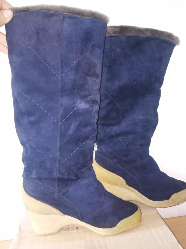 Высокие сапоги, натуральная замша, подкладка натуральная овчина, размер 37,5, потолка 23,5-24см, очень хорошее состояние голенища, подошва пожелтела, сток из Европы