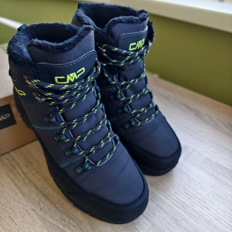 Классные и теплые мембранные ботинки на зиму,осень. Цвет : титан. Легкие, красивые и очень удобные. Страна регистрации бренда - Италия. На этот год стали малы. Были одеты пару раз,поэтому практически как новые,за исключением нескольких царапин на внешней стороне (фото 3,4). По стельке длина 24,5 см. Покупали на Розетке. Описание с сайта производителя : Детские непромокаемые зимние ботинки CMP ANNUUK WP. Классическая шнуровка с двумя крючками на своде стопы для лучшей регулировки. Благодаря мембране Clima Protect обувь водонепроницаема. Верх выполнен из ткани, а вставки из полиуретана на мыске и пятке облегают и защищают стопу. Подкладка из флиса сохраняет стопу в тепле. Подошва сделана из ТПР. Особенности : - непромокаемые зимние ботики для детей; - на шнуровке; - сзади рефлективный элемент; - толстая подошва ТПР обеспечивает хорошую изоляцию и сцепление; - обувь из материала с мембраной CLIMAPROTECT. Есть коробка.