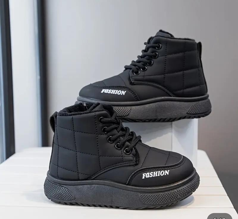 Ботинки для мальчиков и девушек Унисекс, деми Верх из PU с плюшевой подкладкой, нескользящая подошва из ПВХ с застежкой-молнией и шнуровка Размер 26, 34 (черные), 35 (беж) Стелька 16,5 см, 21,5 см и 22,0 см