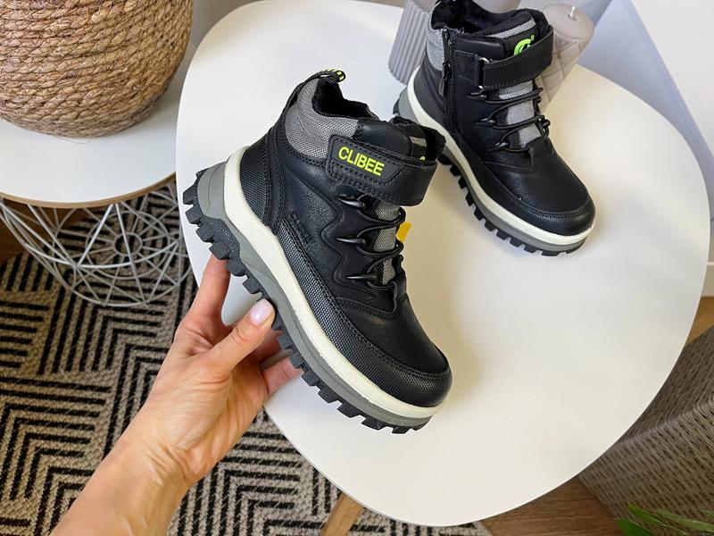 Суперовые ботинки для мальчиков из новой коллекции Качество на высоте фирма Clibee Верх качественная экокожа. внутри овчина (60%) Фиксация молния. Липучка шнуровка-резинка Усиленные по канту подошвы 32 размер 21.4 см 33 размер 22 см (2 шт 34 размер 22.7 см с
