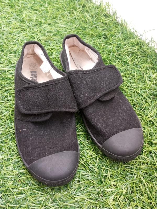 У ребенка была сменная обувь в школе. Все целое. Размер 34-стелька 22см. Верх текстиль, носик прорезиненный. Обувь выбрана, но сверху не чистила текстиль.