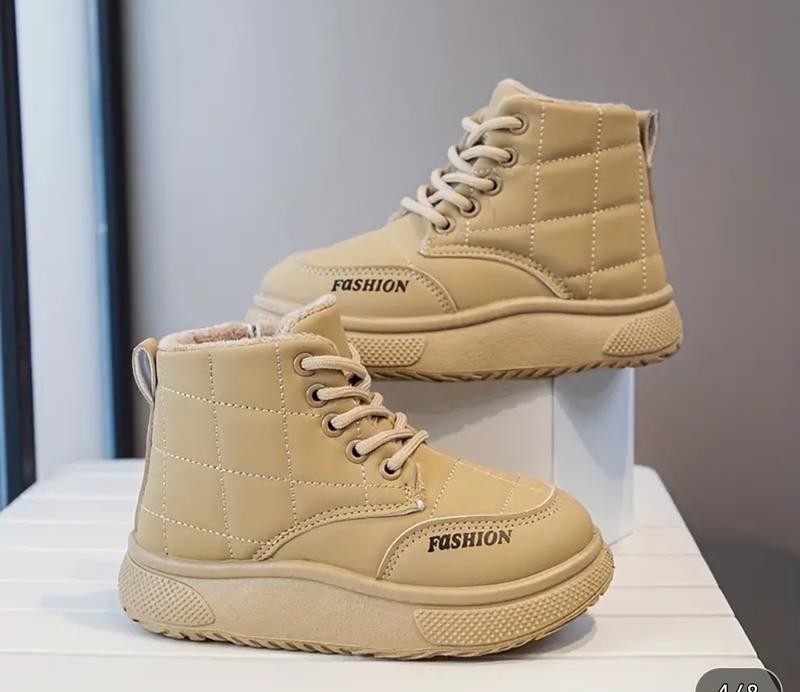 Ботинки для мальчиков и девушек Унисекс, деми Верх из PU с плюшевой подкладкой, нескользящая подошва из ПВХ с застежкой-молнией и шнуровка Размер 35 Стелька 22,0 см