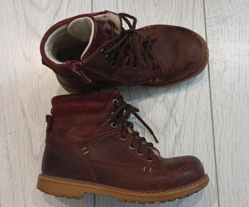 Ботинки кожаные Woopy осенние на мальчика 29 р. с ортопедической стелькой. Сбоку рабочие замочки, шнуровка в идеальном состоянии. Бордовый приятный цвет, есть потертости, но кажется, что то так и надо, очень стильно смотрятся и под джинсы, и под брючины, и под джоггеры☺️
