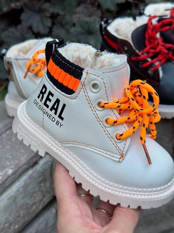 екошкіра на блискавці та шнурках Доступні розміри та виміри устілки, +-2мм 30 - 18 29 - 17,5 28 - 16,5 27 - 16 26 - 15,7 25 - 15,5 24 - 15 23 - 14,5 22 - 14 21 - 13,5 Дитячі зимові черевики з екошкіри, виготовлені з міцного матеріалу, який захистить ніжки дитини від вологи та холоду. Утеплення забезпечує комфорт і тепло.