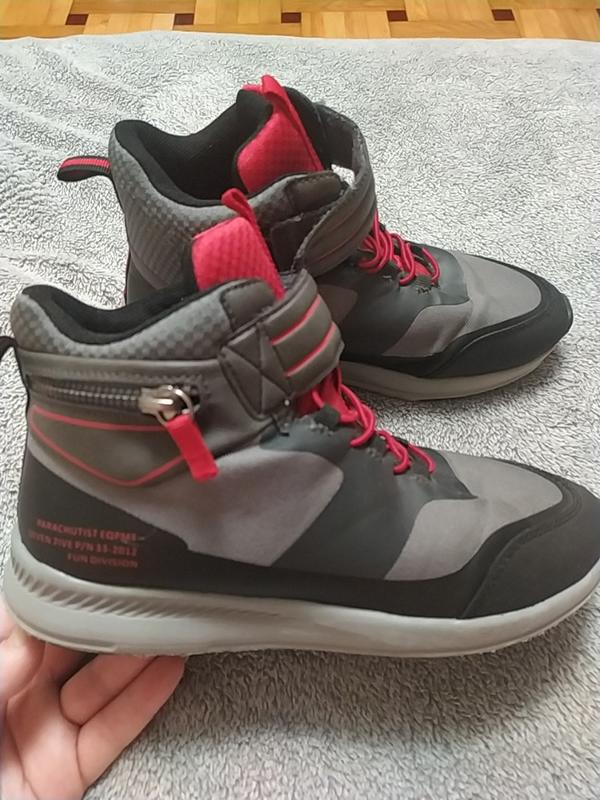 Ботинки в идеальном состоянии.Легкие и очень удобные.Эластичные шнурки,липучки хорошо держат