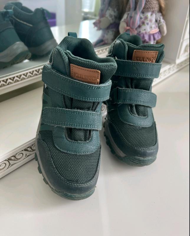 Прекрасная качественная обувь для мальчика, можно и девочке зеленого цвета. Купили за рубежом. Очень качественная европейская обувь. Дитина проносила всю зиму, тепле. Обувь в идеальном состоянии. Ребенок носила аккуратно. стелька имеет 20 см.