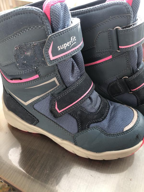 Найтепліша модель з цієї фірми. Теплі, не промокають. Gore-tex. Стан видно на фото. Липучки працюють гарно. Устілка 22.5 см.