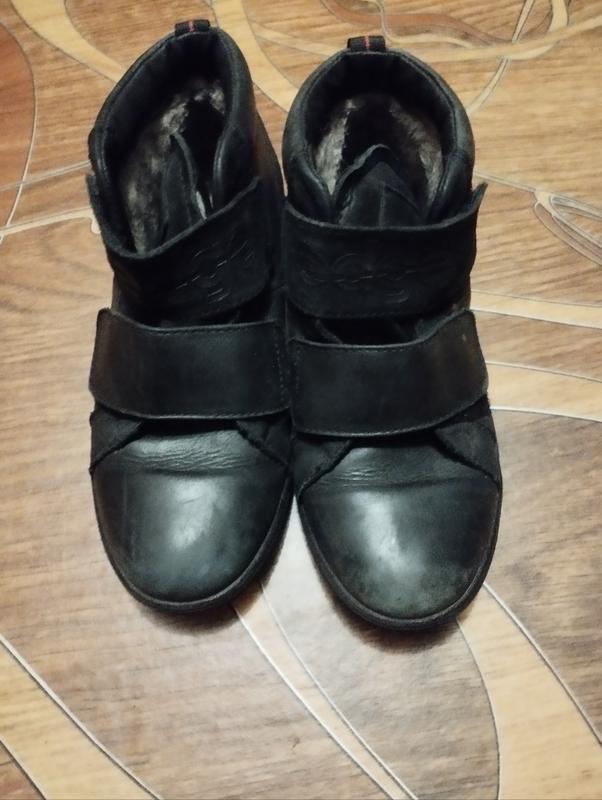 модные, лёгкие , удобные ботиночки. стелька 23 см кожаные натуральные, на крепких липучках состояние отличное, не выношеные. из нюансов нужно подкремить. из за снега и соли носки поблекли. не подкрашивали чтобы видно было что носки не сбиты . если есть желание можно в мастерской подкрасить.