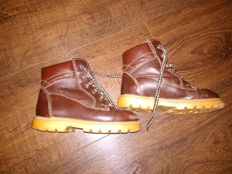 Високі чобітки для хлопчика, натуральна шкіра, р. 27,стелька 18 см.,виробництво Словаччини. Із мінусів-трохи збиті передки.