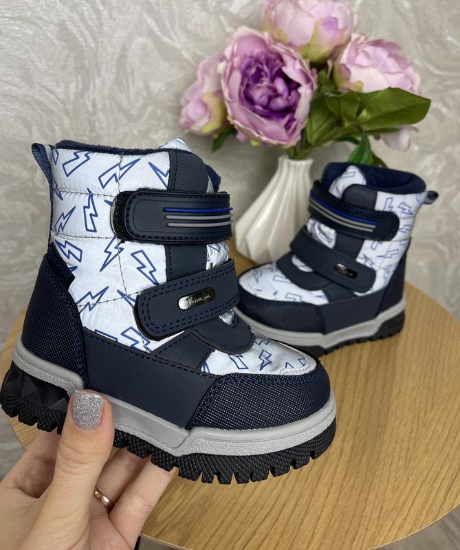 Зимове взуття від Tom.m Дуже гарні та стильні 😍 Дуже круто виглядають на ніжці 🤩 Верх з якісної екошкіри + плащівка,не промокають! Всередині-овчина (60 % натур ) Міцна підошва. Фіксація на 2 липучки 26р - 17 см 2шт