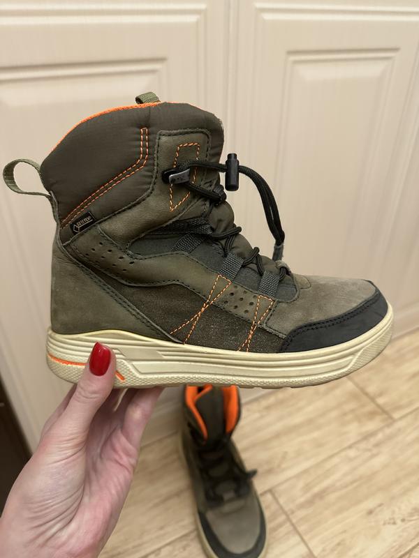 Зимние ботинки Ecco Цвет хаки Верх комбинированный кожа/текстиль Внутри утеплитель Размер 33 Состояние нормальное, присущая потертости дефекты на последних снимках