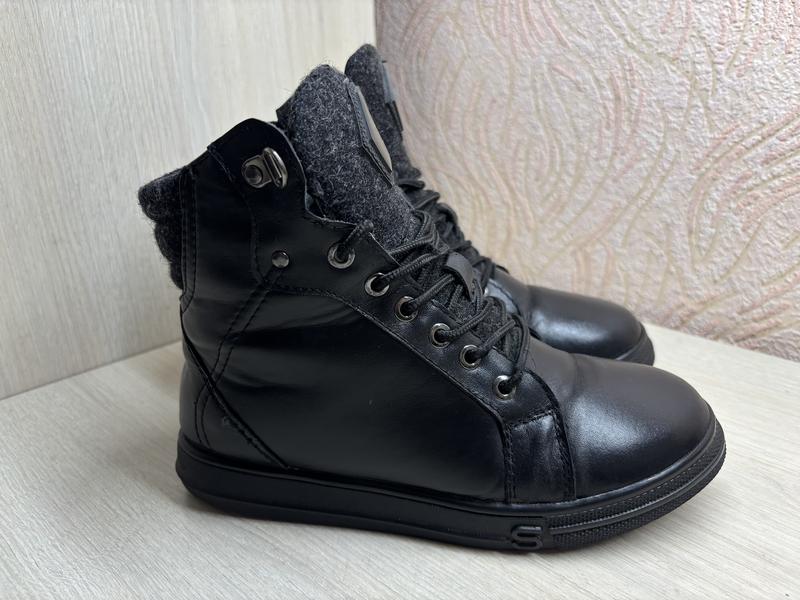 Продам зимние кожаные ботиночки Boy 35 размер на мальчика. Длина стельки 22,5 см. Б/у, но общее состояние очень хорошее. Внешне натуральная кожа, серединка искусственный мех. С боку есть замочек, так что удобно надевать. Нюанс последнее фото, сменный ползунок в замочке.