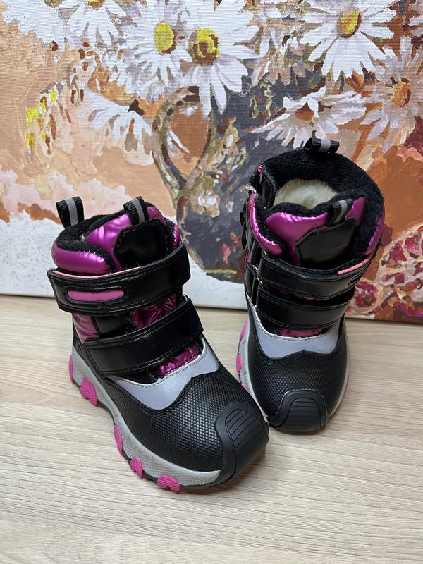 Зимові черевички для дівчинки 👧 Верх виконаний з якісної еко шкіри, та вітро непроникним матеріалом В середині утепленні густим хутром