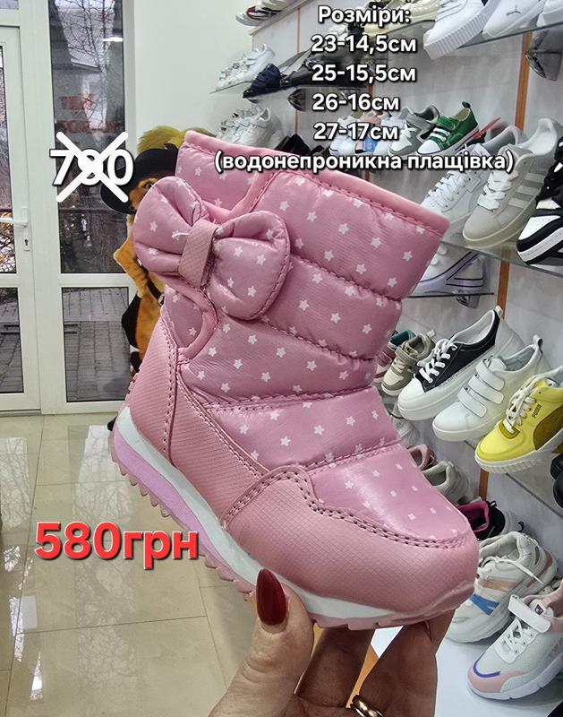 Розовые или белые зимние сапожки,дутики для детей из водонепроницаемой ткани. 23 (14,5 см) 25 (15,5 см) 26 (16 см) 27 (17 см). Цена: 580 грн.