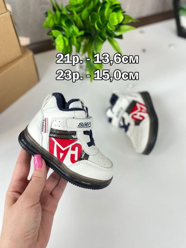 Стильные ботинки для модников от Tom.m. Сбоку замочек, спереди фиксация на липучку, шнурок - резинка. Материал подкладки мягкий флис. Стелька кожаная с супинатором. 21р. - 13,6см 23р. - 15,0см 23р. - 15,0см Измерение сделано внутри по стельке лично мной, погрешность 1-2мм допустима. Подошва с подсветкой. Гарантию на работоспособность подсветки не даём.