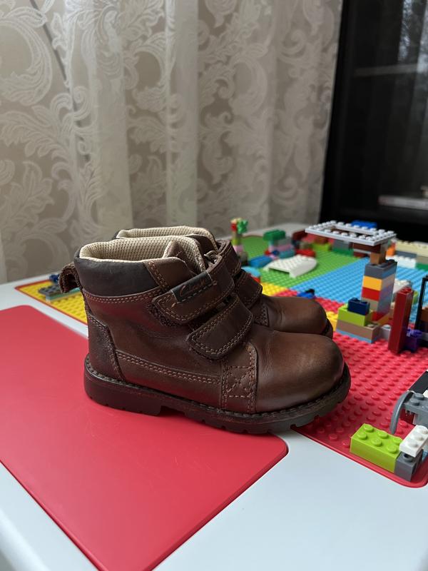 Ботинки демесезон из Clarks в идеальном состоянии, натуральная кожа, стильные и удобные, длина стельки 14-14,5 сантиметров (не вынимается ) )на длину стопы 13,5 размер 22,5