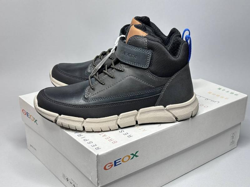 Детские демисезонные кожаные ботинки geox flexyper 31,36,40р мальчику черные