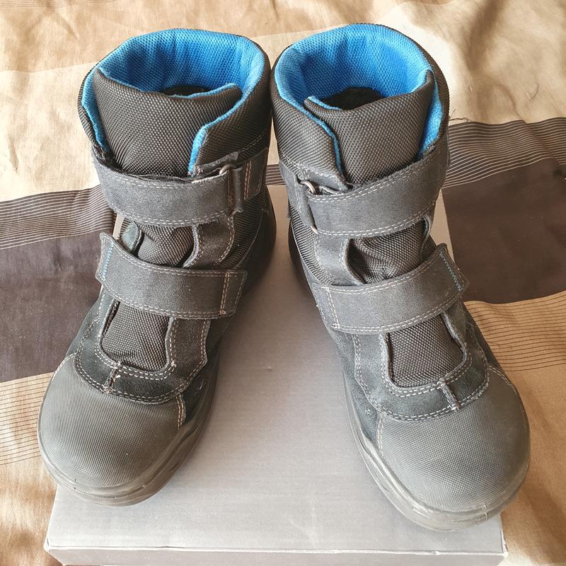 Зимние ботинки ecco 35 размер для мальчика в хорошем состоянии. Внутри протертые пятки. Снаружи повреждений нет, все строчки на месте, липучки держат красиво. Цвет замши немного тусклее. Стелька на фото, 22 см до ушиба.