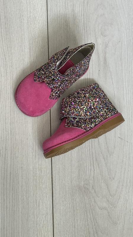 Детские демисезонные ботинки для маленьких модниц, Ваш ребенок будет в восторге при виде обуви, а примерив ее однажды, уже никогда не разведется с ней. Ваши дети будут выглядеть модно и стильно! Очень красивые, блестки переливаются, удобны в носке, живые выглядят гораздо лучше чем на фотографии, легкие, добротная подошва, новые! Размеры в см указаны стельки от носка до пятки. Производитель Испания Верх натуральная замша Внутри натуральная.кожа Супинатор отсутствует Цвет фуксия р.22=14см р.23=14,5см р.24=15см