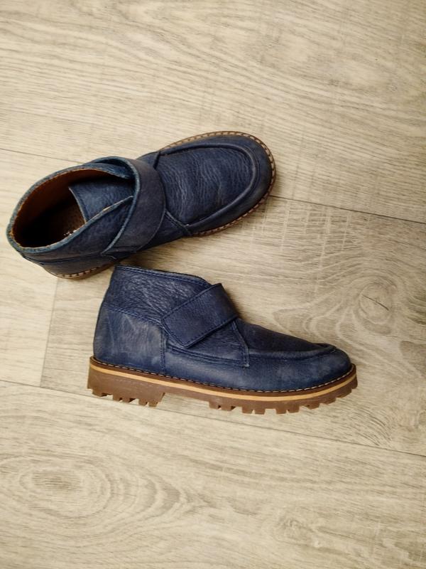 шикарные с мягкой кожи ботиночки на мальчика.подошва полиуретан без повреждений .на плотной липучке застёжка .р.29 стелька 18.5 см высота 7.5 см каблук 2см перед подошвы 1см подойдут как под классический образ так и под джинсы состояние без повреждений можно сказать новые оплата и почта любая