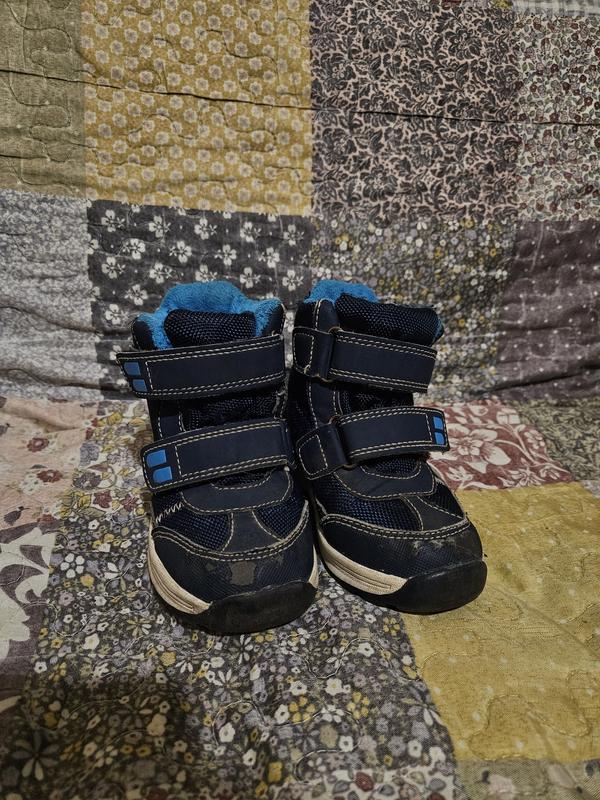 Зимние ботинки 23 р. Стелька 15 см. Очень теплые, не промокают, термостельки, с технологией Tentex. Сын отгонял всю зиму по лужам и грязи - ноги всегда были теплые и сухие. Единый нюанс - пожирался материал на носах. Во всем остальном отличные, повсюду цели.