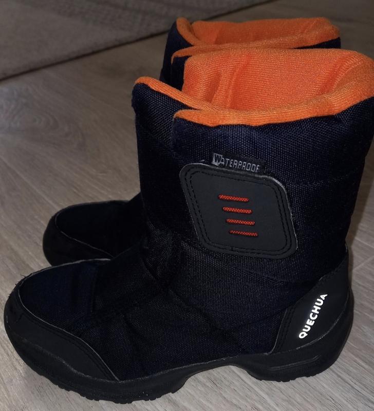 Продам зимние сапожки известного французского бренда Quechua: 32размер, длина по стельке 20см, темно-синие с ярко-оранжевой подкладкой, подойдут для мальчика и девочки. Красивые рабочие липучки позволяют надежно зафиксировать ногу, материал не промокает, хороший протектор, не скользкие. В хорошем состоянии