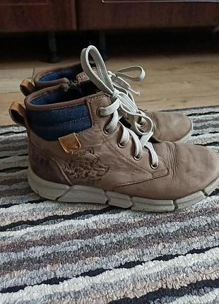 без дирок. середина целая без утепления. единственный минус что носовая часть потеряла цвет. сделаны из нубука. стелька 22 см.