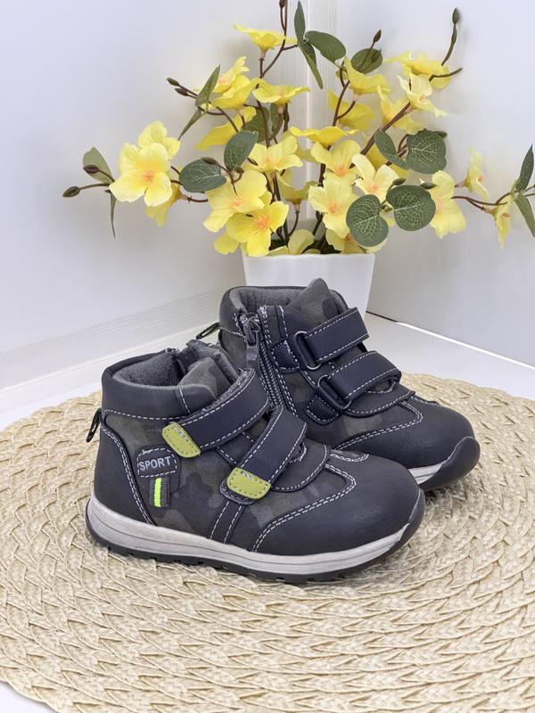 21 розмір- 13,5 см 23 розмір- 14,6 см Верх - еко шкіра В середині- фліс, шкіряна устілка з супінатором Застібка- липучки, боковий замочок Легкі та зручні 21 розмір - 13,4 см 23 розмір - 14,6 см
