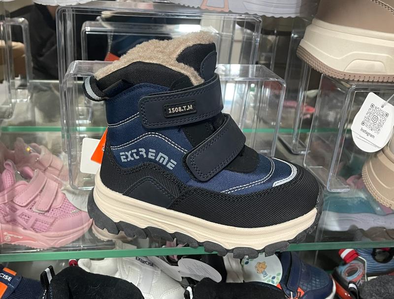 Зимние термо ботинки для мальчиков от любимой тм Том.М. Качество отличное Верх эко кожа и водонепроницаемый материал который не пропускает влагу и холод Внутри густой, теплый мех ( натуральная овчина 60%. Фиксация на 2 липучки. Протекторная, антислизкая подошва. ЦИНА 1320 35 размер 23 см