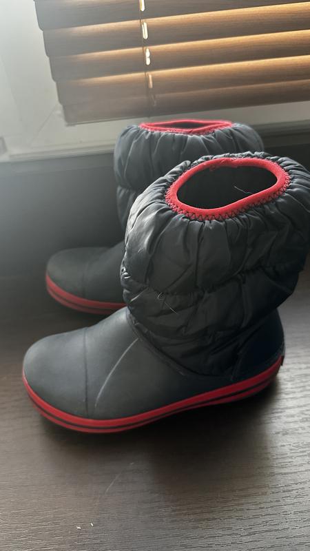 Демі-зимові чобітки Crocs, червоно-темно синього кольору. Стан - були одягнені до 10 разів, ідеальний. Розмір J2