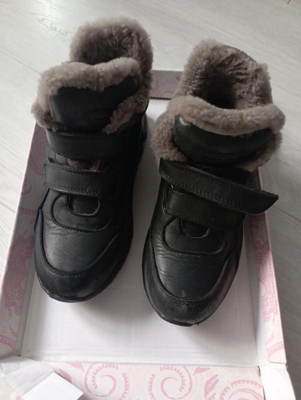 Детские зимние ботинки. На меху. Очень теплые. Стелька также на меху. Цвет: Черный. Размер: 33. Материал: Кожа натуральная. На липучках. По стельке 22 см. Есть также большой выбор детской обуви на мальчика и женской обуви. Отправка товара после оплаты на карту