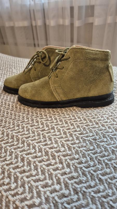 ✅ Размер: 27 (длина стельки 16,5 см) ✅ Материал: натуральная замша ✅ Цвет: зеленый (похожий на травяной/салатовый, но не яркий) ✅ Застежка: шнуровка ✅ Стан: идеальный, узлы всего несколько раз "на выход" Эти ботинки выглядят очень стильно, подходят и под джинсы, и под более праздничную одежду. Легкие, удобные и дышащие благодаря натуральной замше.