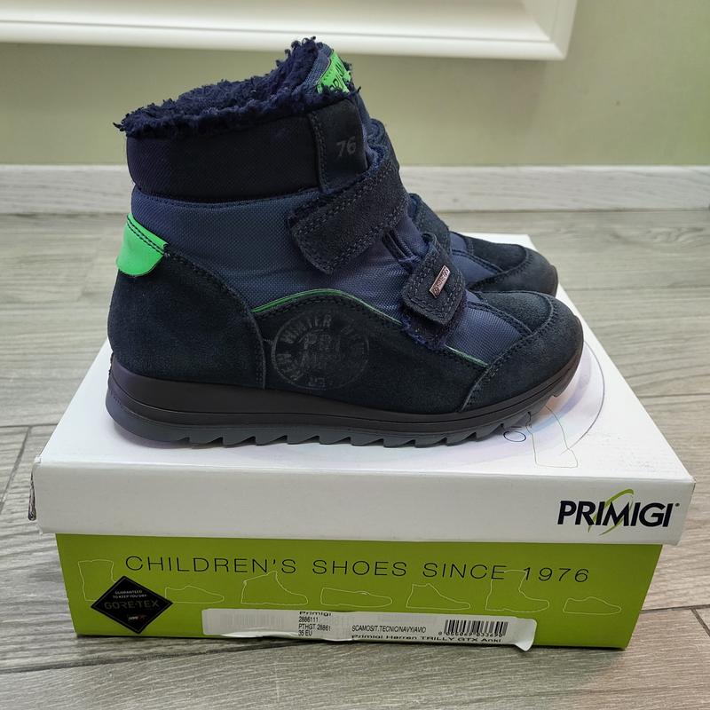 Зимние ботинки фирмы Primigi, с системой gore tex. Верх-замша с мембраной, высокий протектор, не скользкие, после одного ребенка. Стан - красивый, чуточку потерял цвет замш. Размер 35. Стелька -22см