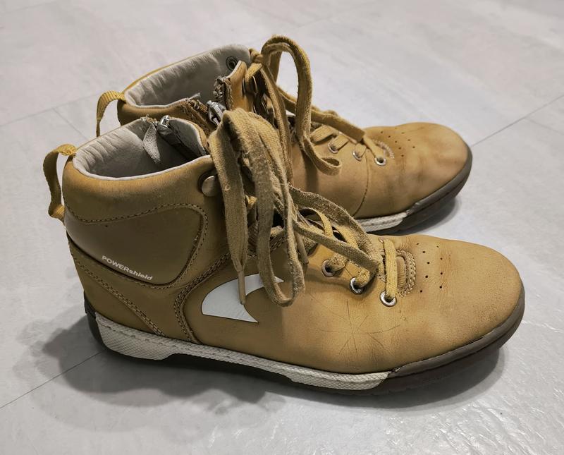 Ботинки осенние унисекс. Подойдут и для мальчика и для девочки. Удобные, на теплую осень. Стан хорош, есть небольшой дефект - ручкой нарисовано в одном месте (имеется на фото). Размер 34 (стелька 22см)