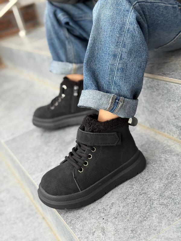 Ззовні еко шкіра дуже хорошої якості Всередині натуральна овчина в комбінації із штучним хутром (65/35) Є замочок для легкого взування Фіксуються на ніжці липучкою Дуже легкі та зручні Розміри в наявності: 26р.-16,5 см 27р.-17,2 см 28р.-17,8 см 29р.-18,3 см