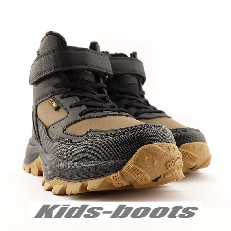 Ботинки изготовлены из искусственной кожи. Основные цвета верха – черный и коричневый. Материал подкладки - набивная шерсть белого цвета. Стелька – вынимается, изготовлена из набивной шерсти белого цвета. Обувь не впитывает влагу, и отлично поддерживает комфортную температуру для тела. Имеет легкую, гибкую и упругой подошву. Застежка – молния, липучка и шнурки. Размеры; обувь / стельки, см -32/21,5 cm; 33/22cm; 34/22,8cm; 35/23,3cm; 36/24cm; 37/24,5cm.