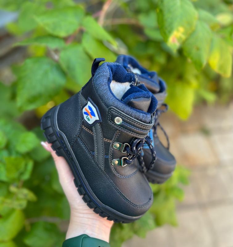 В наличии Зимние ботиночки с густым мехом Верх эко кожа Фиксация с помощью шнуровки и липучки, сбоку есть молния Цвет темно-синий, не тяжелые 27-17,5 см