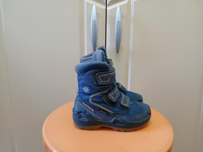 Дитячі черевики Lowa Milo Gtx HI Gore-tex На мембрані Gore-tex 26 р Довжина устілки з закругленням 17 см Довжина устілки до закруглення 16,5 см На стопу 16 см підійде. Стан на фото.Дефектів які впливають на носку нема. Все ціле. Підошва без зносу. Нічого не відклеюеться та не тріскаеться. По стану е естетичний момент на липучках показано на фото трохи покашлатились. Ззаду е світловідбивачі які відбивають світло фарбою авто вночі. Легкі та зручні. Ціна нових в магазині 85 евро = 4000 грн